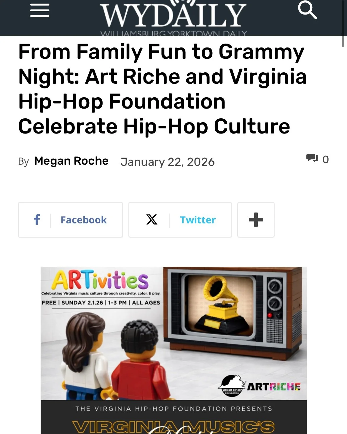 A celebration of the Grammys is in store with a full day of events Feb. 1, thanks to a joint effort between Williamsburg’s Art Riche and the Virginia Hip-Hop Foundation.